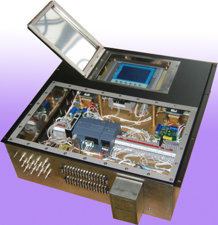 Sensitive electronics are housed in an EMI shielded control cabinet.